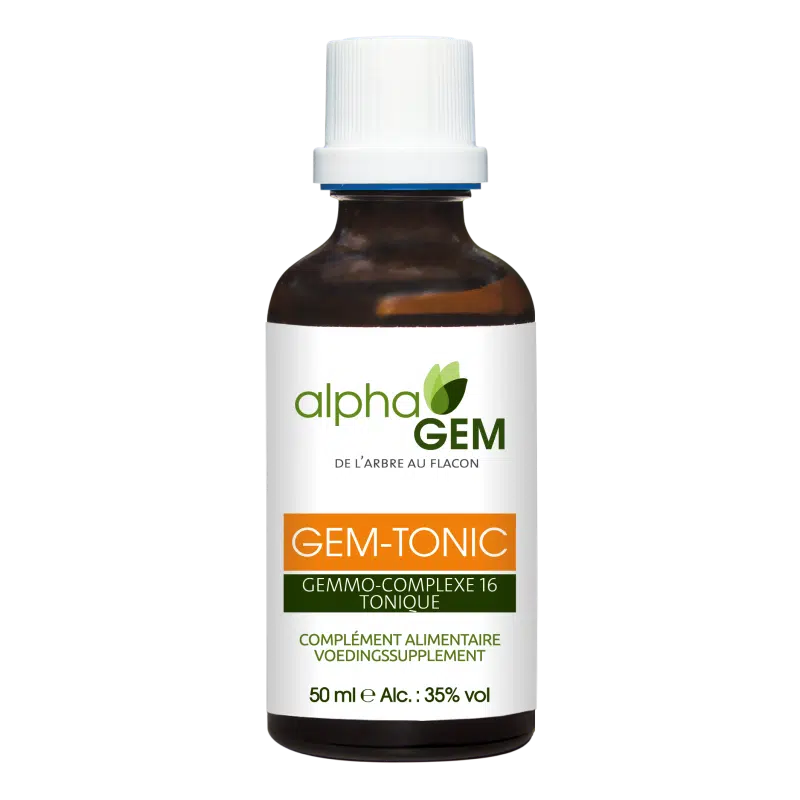 Le complexe GEM-TONIC est un complexe audacieux qui vous aidera à combattre la fatigue et la somnolence. Les jeunes pousses de romarin et les bourgeons de cassis ont un effet bénéfique sur l’énergie. Ce complexe est conseillé en cas de fatigue passagère sans risque d’accoutumance.