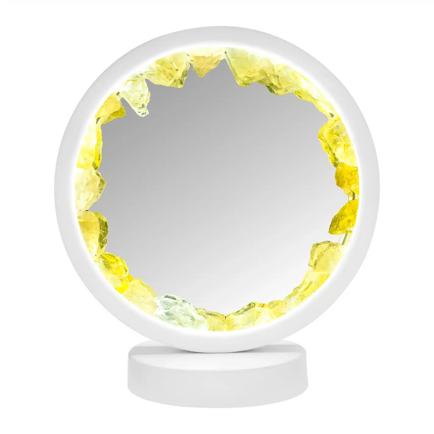 Chaque lampe miroir ronde avec socle transforme votre pièce en un havre de lumière. Leur design rond et pur diffuse une lumière LED qui se reflète dans les facettes de des pierres, projetant des nuances apaisantes sur les murs environnants. C’est une invitation à la relaxation et à l’admiration quotidienne d’un spectacle lumineux unique.