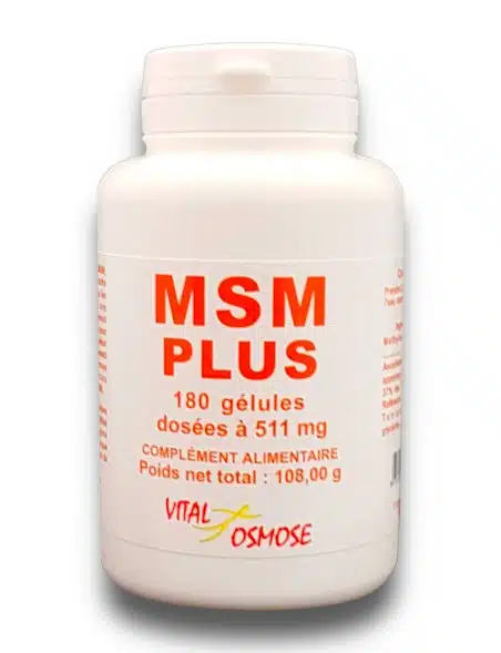 Prendre 2 à 3 gélules par jour en cure de 3 mois 3 gélules apportent 1500 mg de MSM et 30 mg de vitamine C (soit 38 % des apports quotidiens recommandés).