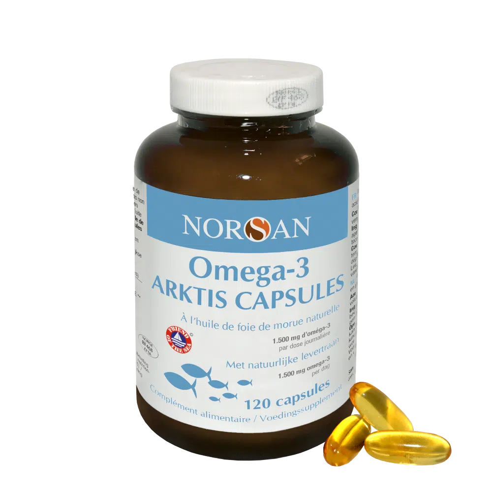 Oméga-3 Arktis sont des capsules d’huile de foie de morue naturelle et pure issue d’une pêche durable en Arctique. Cette solution offre une alternative à la prise d’huile liquide moins pratique en cas de voyage ou pour ceux qui ne souhaitent pas consommer l’huile liquide pure.