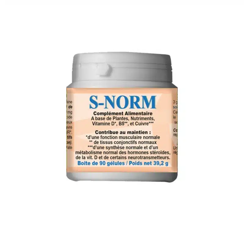 Outre les ronflements, S-NORM s’associe favorablement aux produits destinés à un meilleur contrôle du poids. Il complète efficacement les produits régulant les déficiences hormonales physiologiques liées à l’âge chez l’homme comme chez la femme et les risques osseux, cutanés et organiques associés.